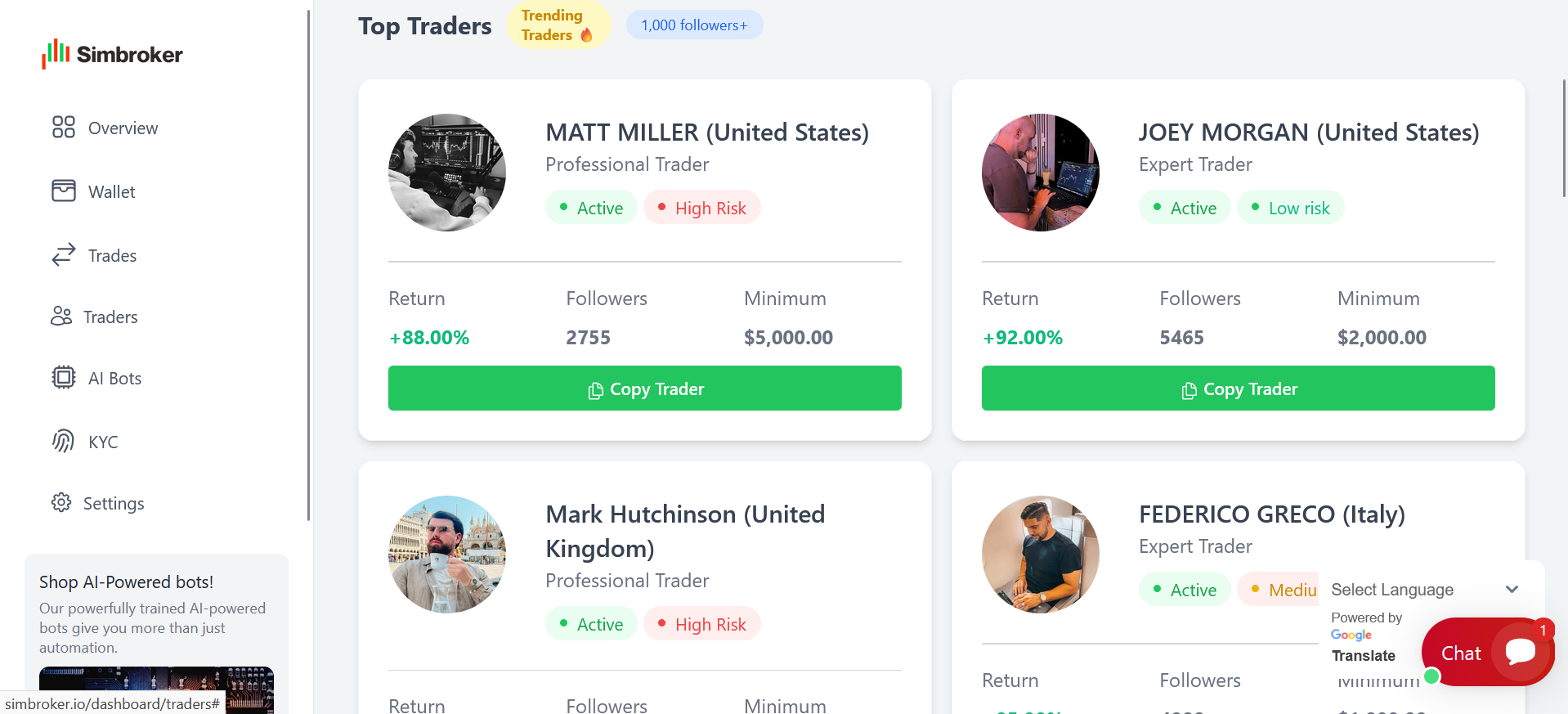 Simbroker is an innovative platform engineered for structured, risk-controlled trade replication. It connects investors (followers) with verified traders. Leading the copytrading industry since 2014.